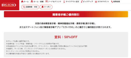 カラオケ店ビッグエコー、ラウンドワンには障害者割引がある