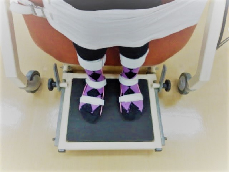 画像は立位の練習、夜間装具として使っていたプラスチック製の短下肢装具を使用しています。