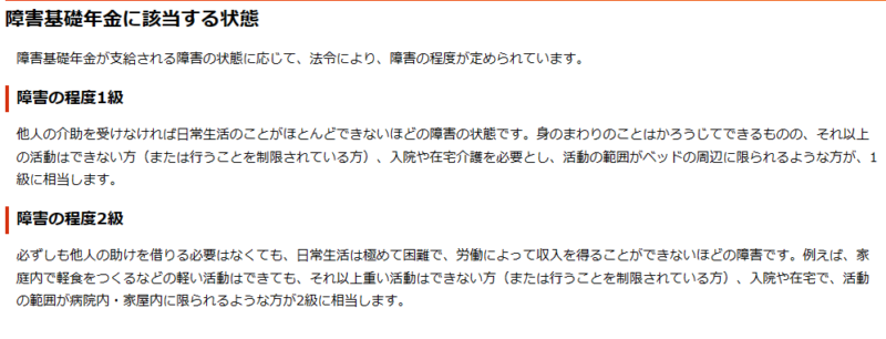 娘が当てはまるとしたら2級ですが、労働によって収入を得ることができないほどの障害。